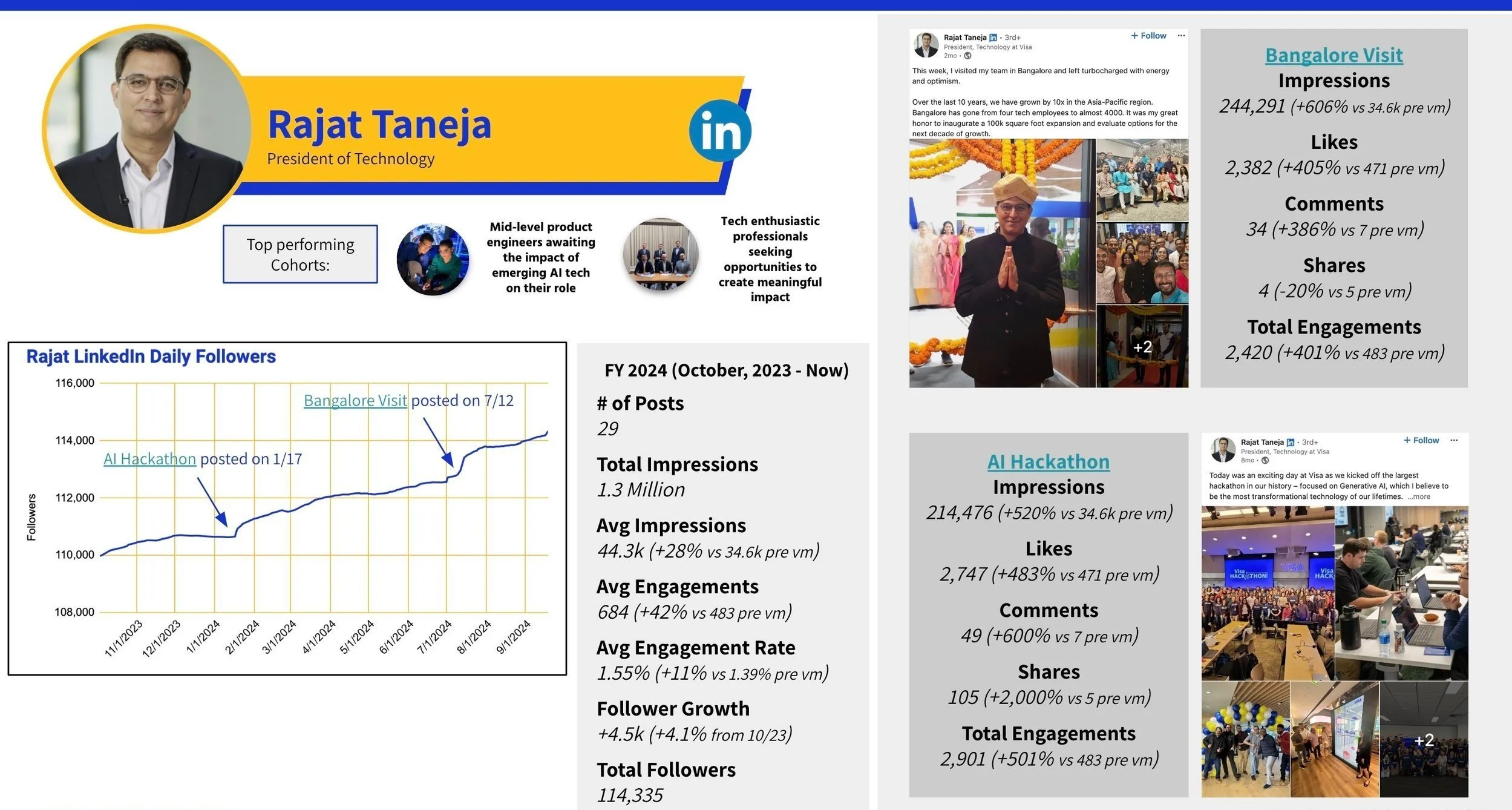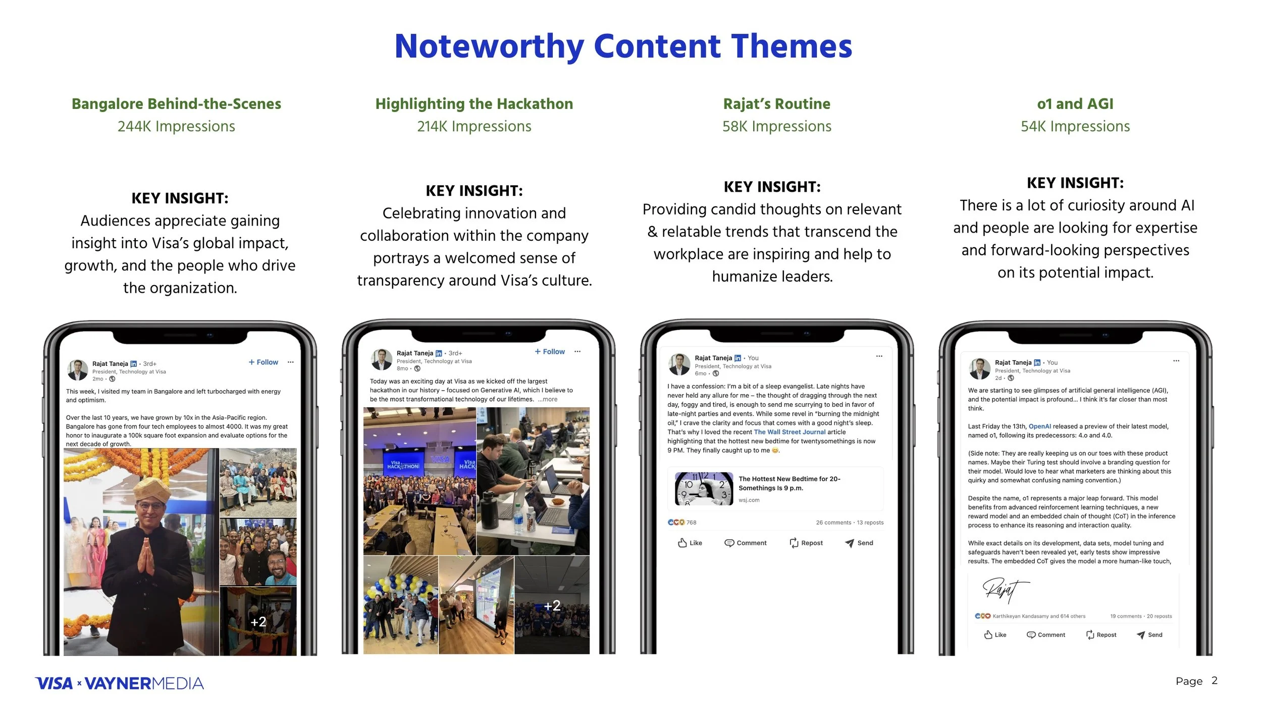 I’m honored to have had the opportunity to collaborate with (and learn from) Visa’s top executives. By amplifying their voices on LinkedIn, we’re highlighting the expertise, values, and passion that drive the brand forward in a more humanized way. Through social, Visa’s leaders are authentically sharing the company’s vision and connecting with audiences on a deeper level—building trust and credibility among consumers, businesses, partners, and top recruitment prospects.
